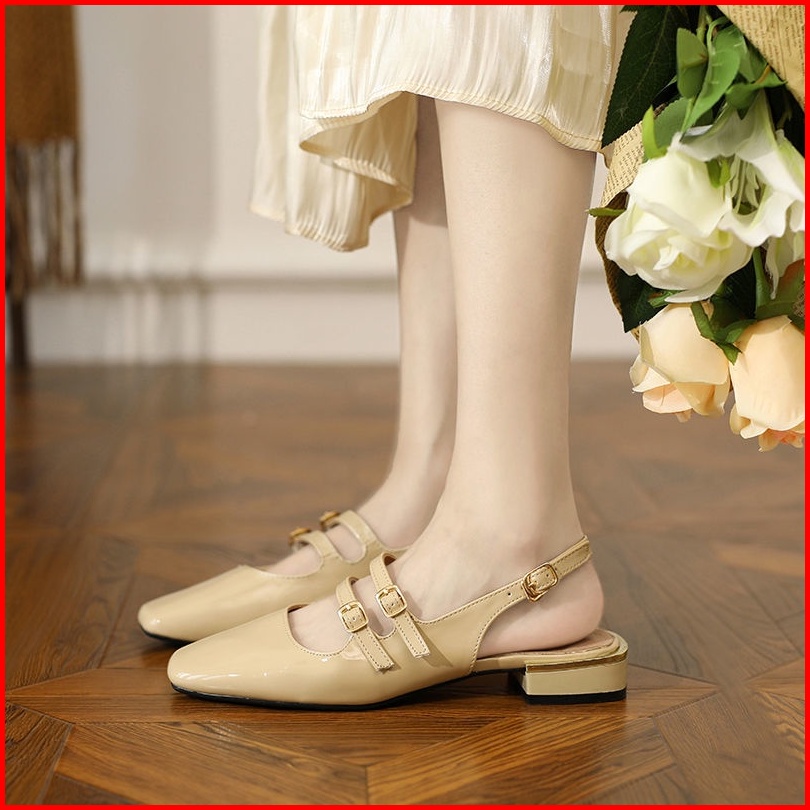 10077 Sepatu Flat Wanita Sandal Mules Fashion Import Bl Sling Back Ready Jakarta With Box