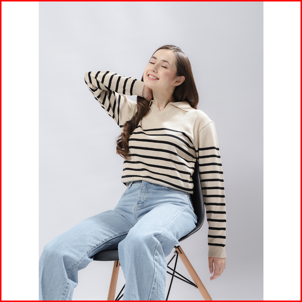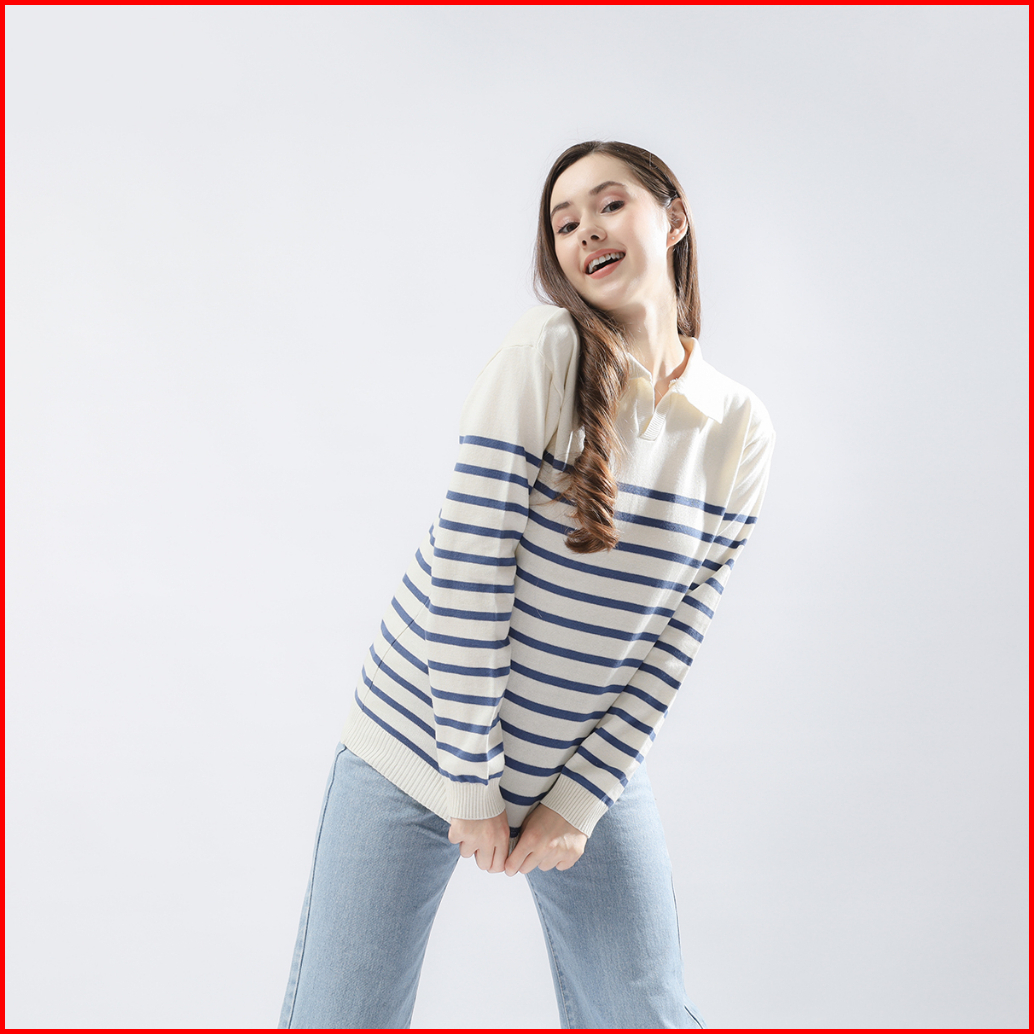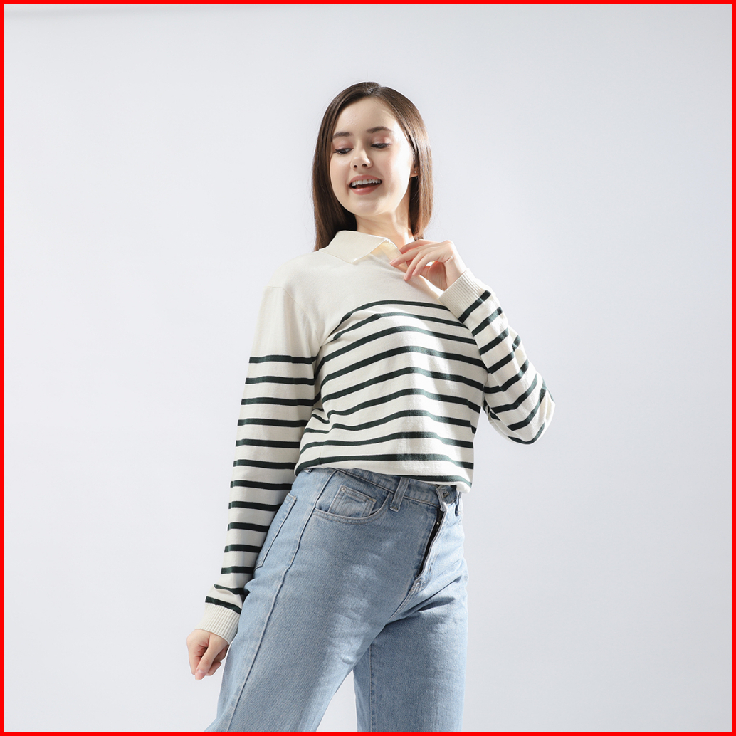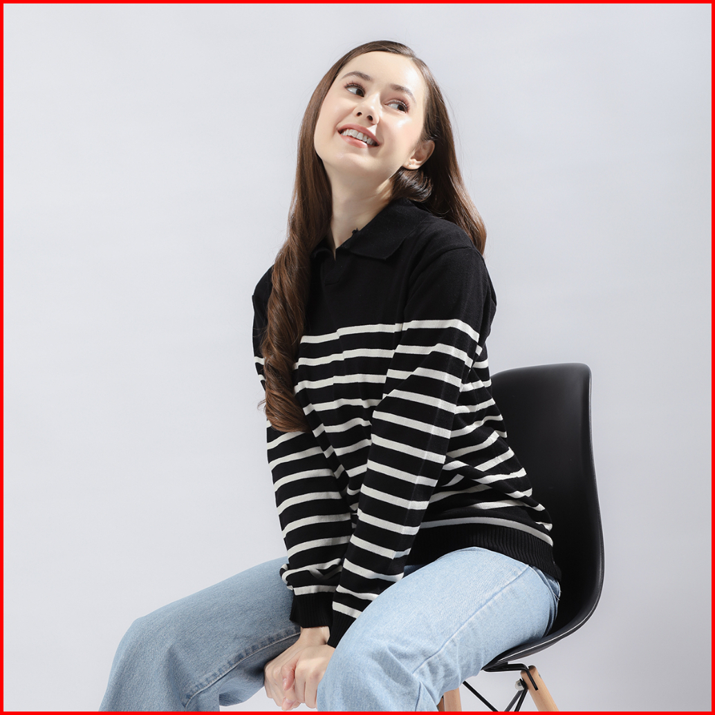 Nigoo Yuji Polo Knit Sweater Atasan Wanita
