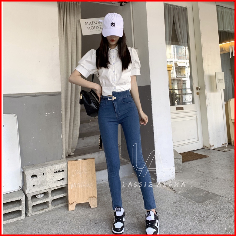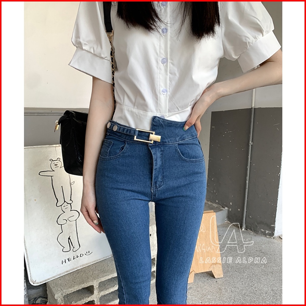 Lassie Alpha J25 Jeans Wanita Jeans Biru Muda Celana Panjang Skinny Berpinggang Tinggi Celana Panjang Skinny Berpinggang