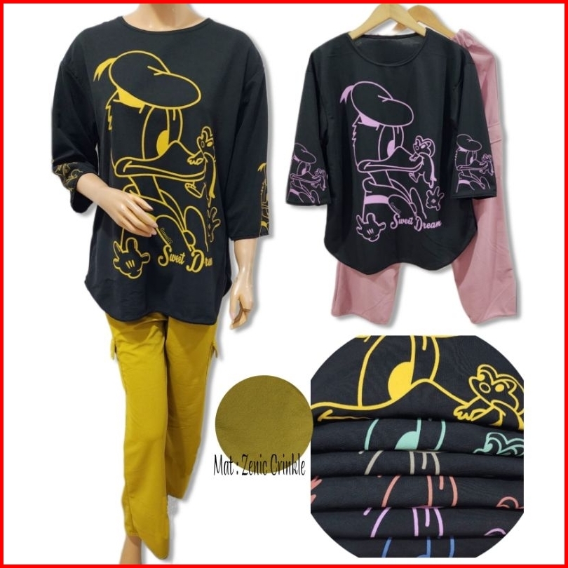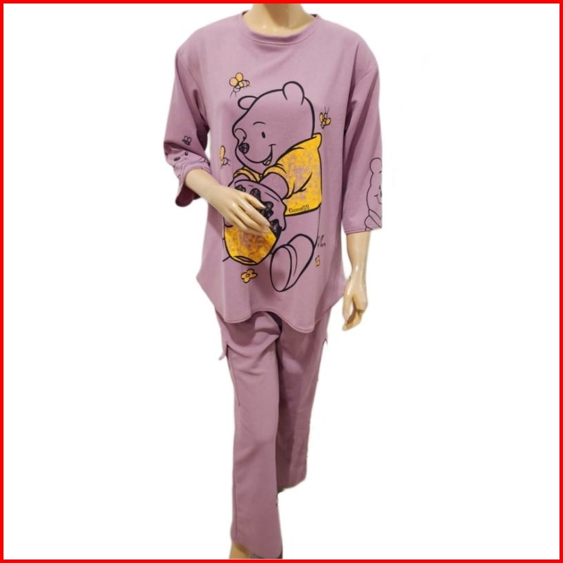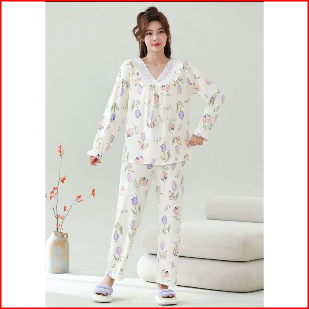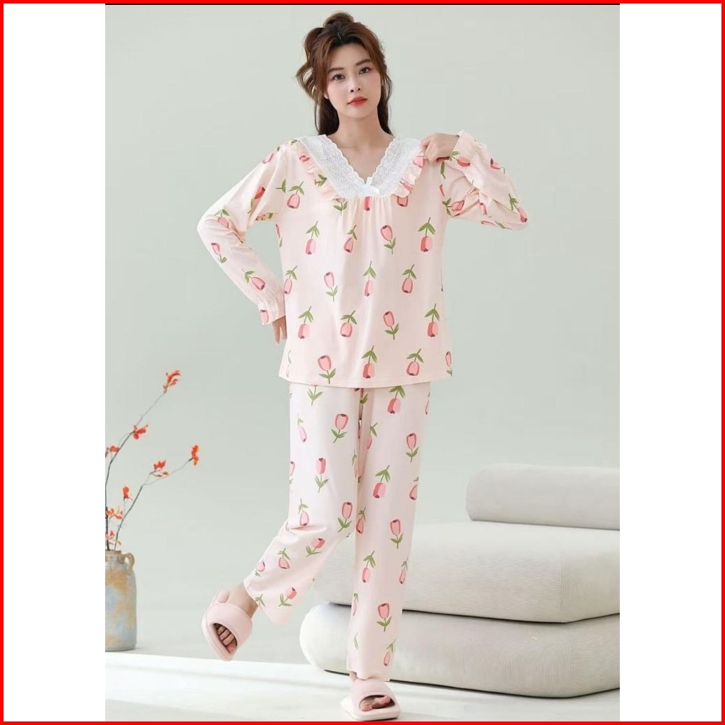 Setelan Piyama Baju Tidur Wanita Jumbo Lengan Panjang Premium Import Korea Style Kekinian