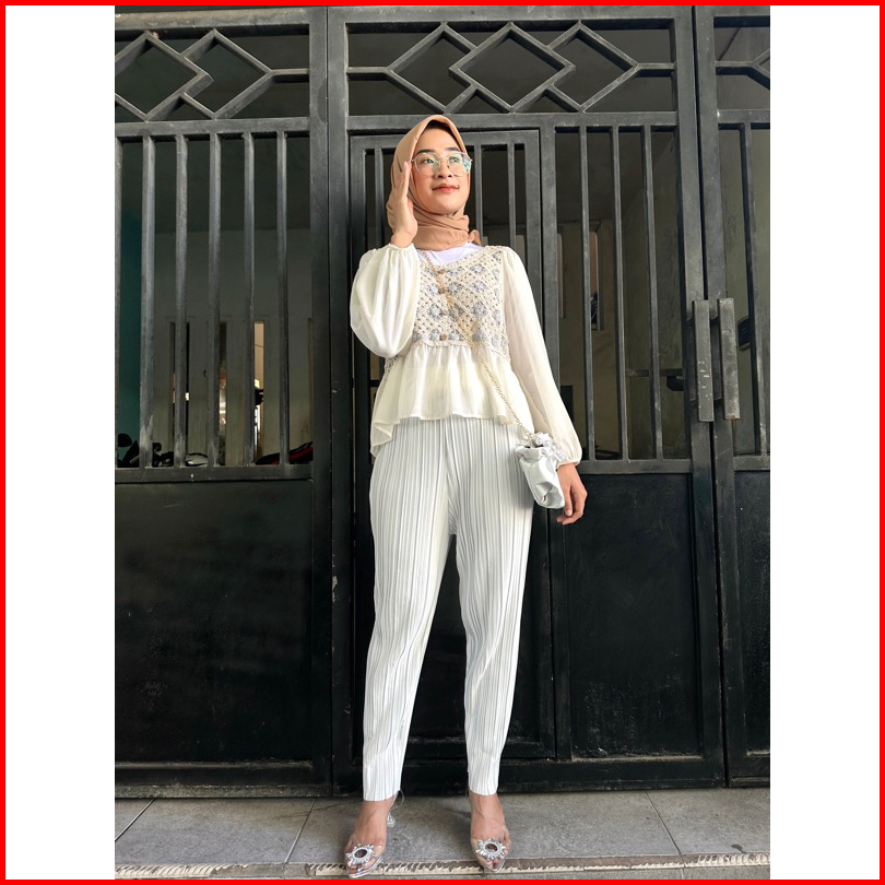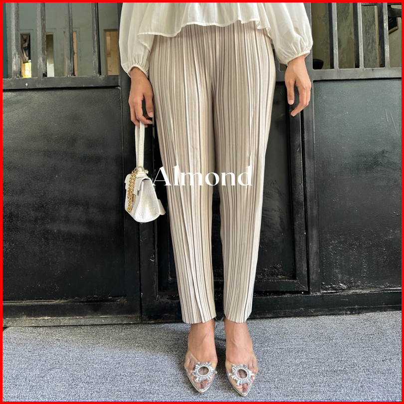Celana Kulot Pensil Plisket Bb Pleated Pencil Pants Pleated Pants Celana Wanita Premium