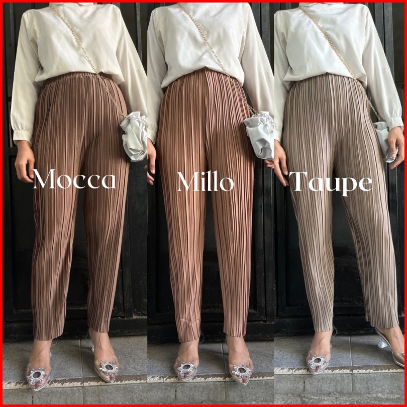 Hitam, Dusty Purple, White, Magenta, Maroon, Emerald, Millo, Mocca, Khaki, Taupe, Cappucino, Creme, Lime, Cinnamon, Almond, Grey, Milk Tea, Thai Tea, Coksu, Latte, Turkish, Pink Nude, Olive, Hijau Botol