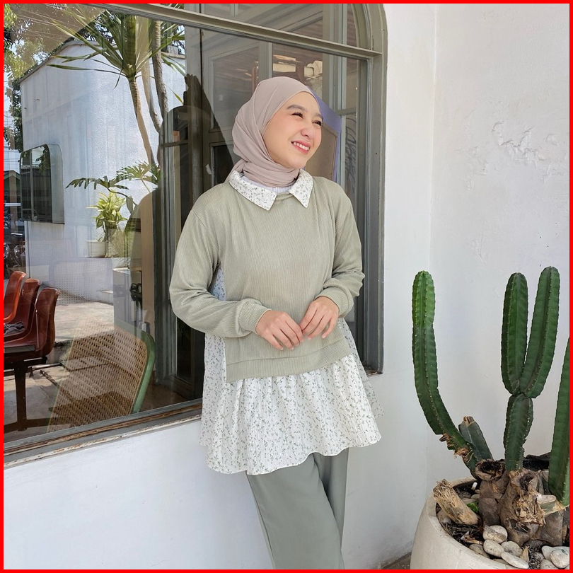 Winka Blouse Blouse 2in1 Blouse Semi Vest Blouse Cantik