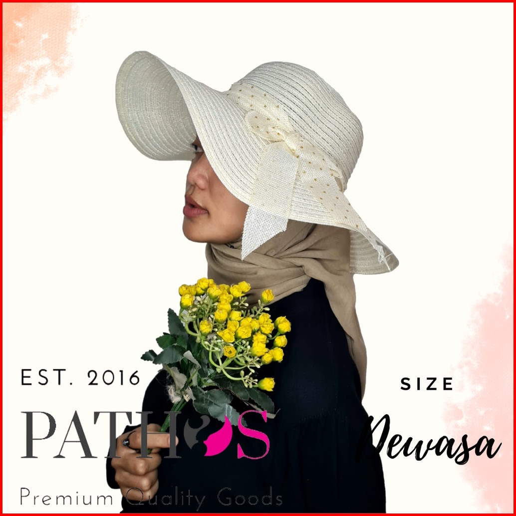 Topi Pantai Pita Wanita Dewasa Sayap Kecil Import Pita