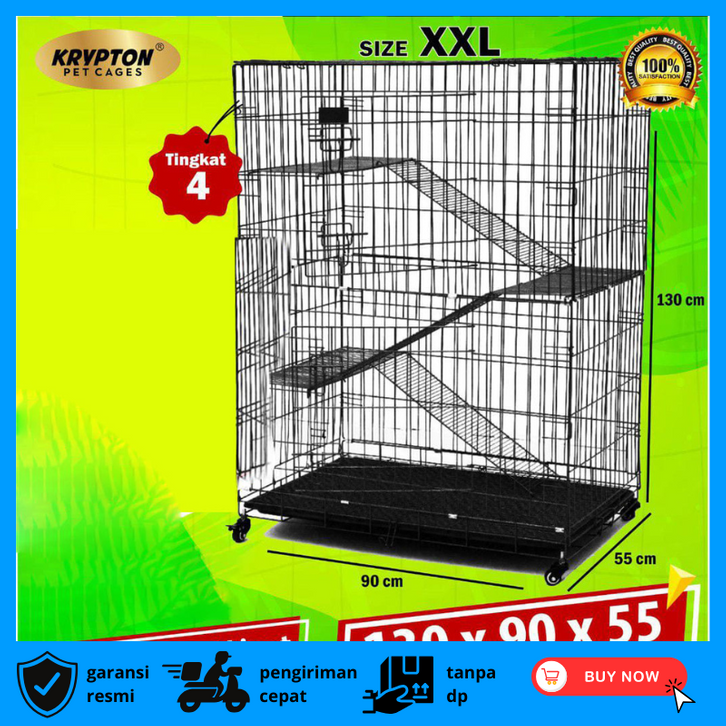 Kandang Kucing Tingkat 3 EXTRA JUMBO 130x90x55 RODA Kandang Tingkat Kucing Ukuran Jumbo
