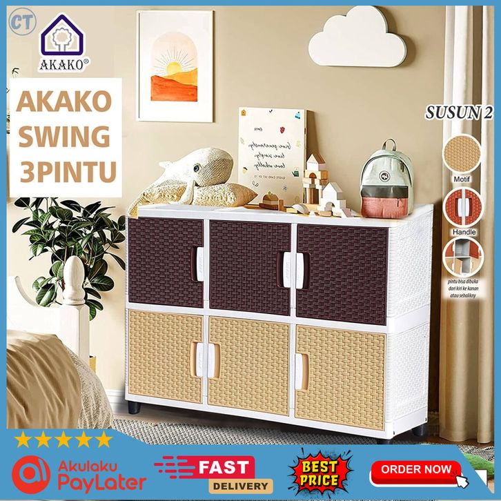 Lemari Plastik Akako Swing 3 Pintu 2 TINGKAT Lemari Baju Plastik