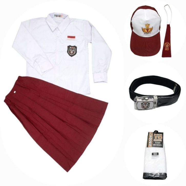 Setelan Seragam Sekolah SD Merah Putih Perempuan Lengan Panjang Rok Panjang Super Lengkap Kelas 1-6 SD