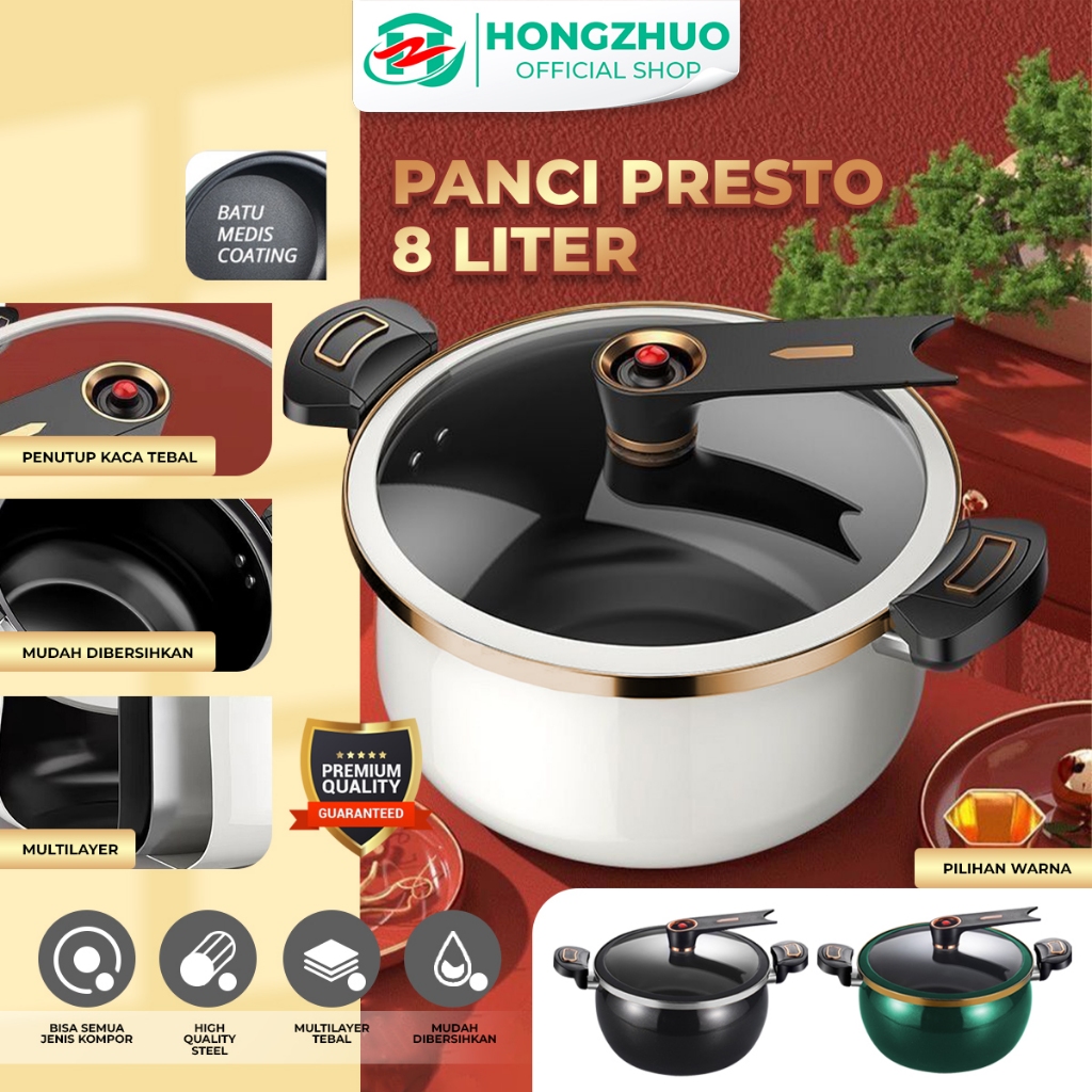 Hongzhuo Panci Presto White Premium 12Liter Premium Quality warna Putih Hitam Wajan Panci Presto Coating Batu Medis Tefl