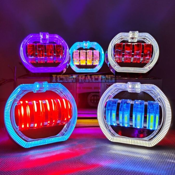 Lampu Utama Biled Projector Mode Daymaker Projie Biled 4 LED 8D Plus Shroud 4.5 inch Projie Biled Daymaker