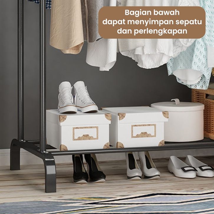 Dejavu Rak Baju Stand Hanger Gawang Rak Gantungan Baju Dengan Rak Celana Jemuran Baju Mulig Rak Besi Gamis Butik Bazar
