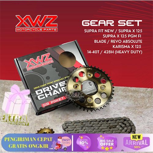 SUPER GEAR GIR SET GIR PAKET SUPRA X 125 FI SUPRA FIT NEW KARISMA REVO 428H HEAVY DUTY XWZ