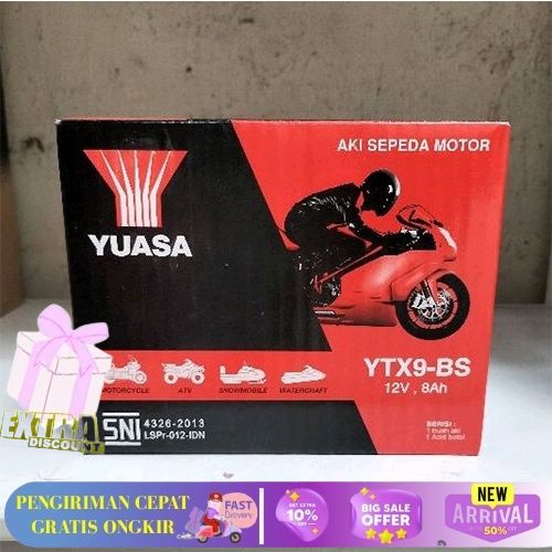 SUPER AKI ACCU YTX9-BS YUASA 12V 8AH MOTOR NINJA 250 FI, KTM DUKE 200, BURGMAN, SYM, Z800 ACCU KERING