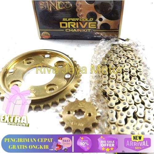 SUPER GEAR PAKET / GIR SET + RANTAI BLADE REVO SUPRA X FIT LAMA NEW KARISMA ABSOLUTE 125 MODEL SSS GOLD