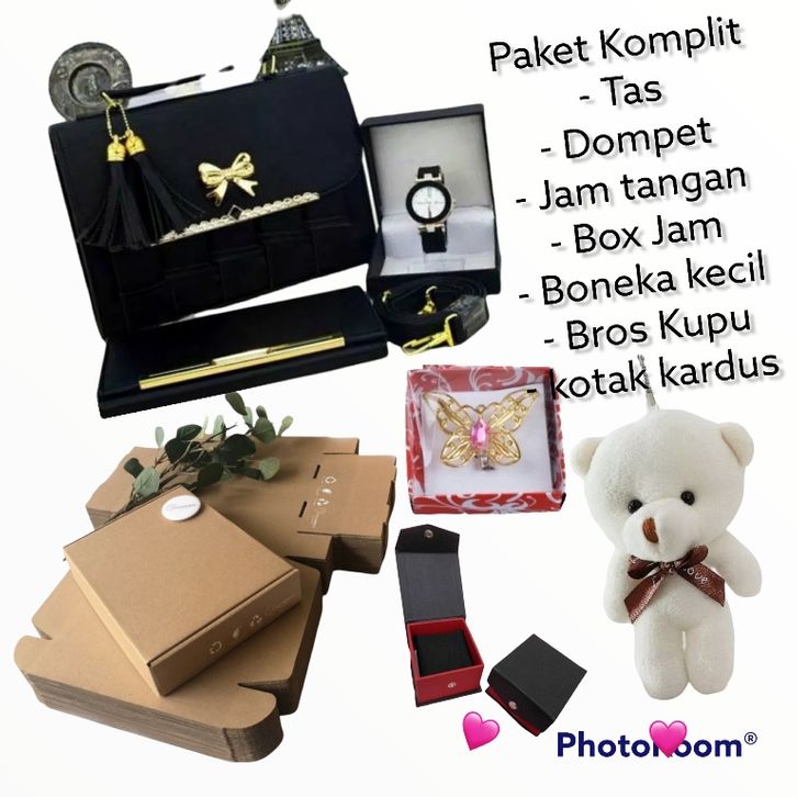 Tas cewek Selempang Handbag Tas Tenteng 3in1 Sling Bag Perempuan Pesta Kondangan Formal Paket Set Jam Dompet