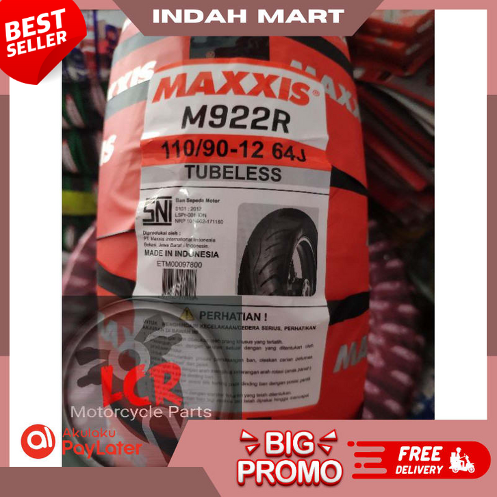 BAN TUBELESS MATIC 𝗔𝗦𝗟𝗜 𝟭𝟬𝟬% 110/90 14 MAXXIS BELAKANG HONDA SCOOPY FI 110 90 12 TUBLES MATIC FREEGO RING 12 TERM