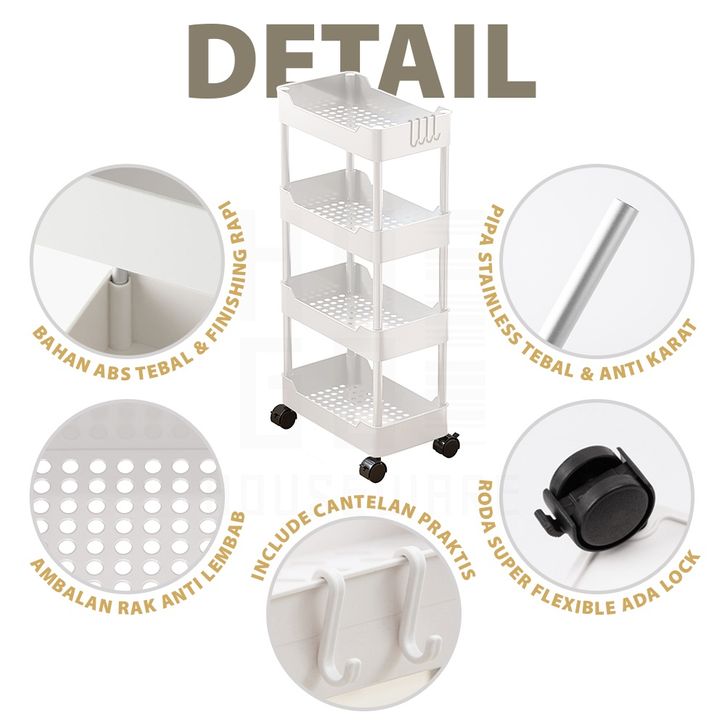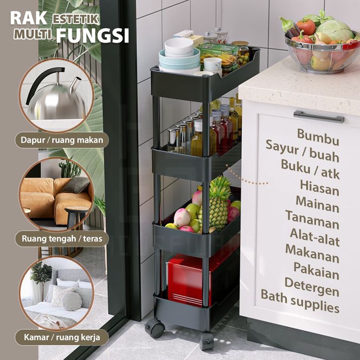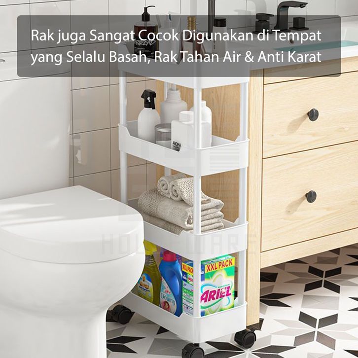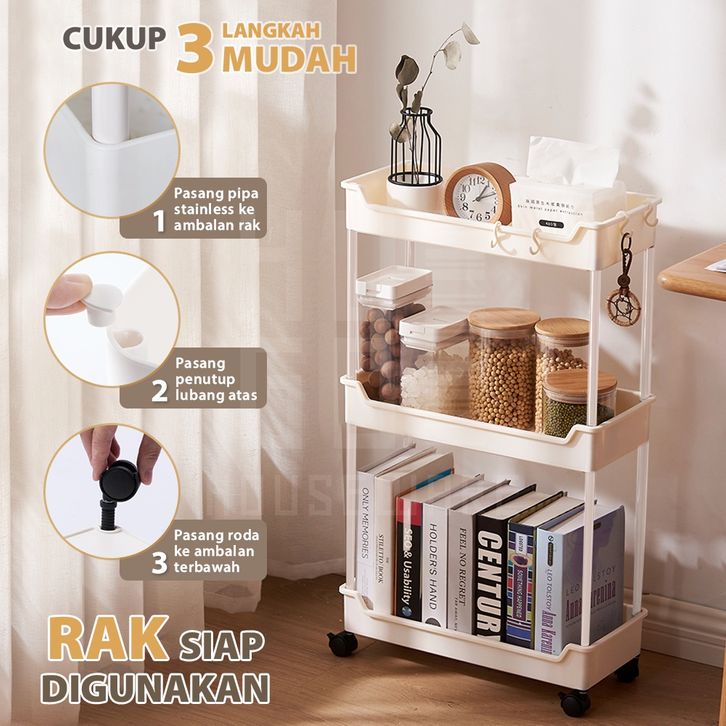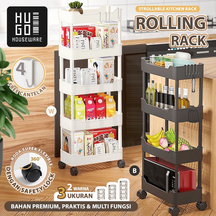 Rak Susun Serbaguna HUGO Rak Dapur Serbaguna Rak Troli Rak Kamar Mandi Rak Susun Plastik dengan Roda