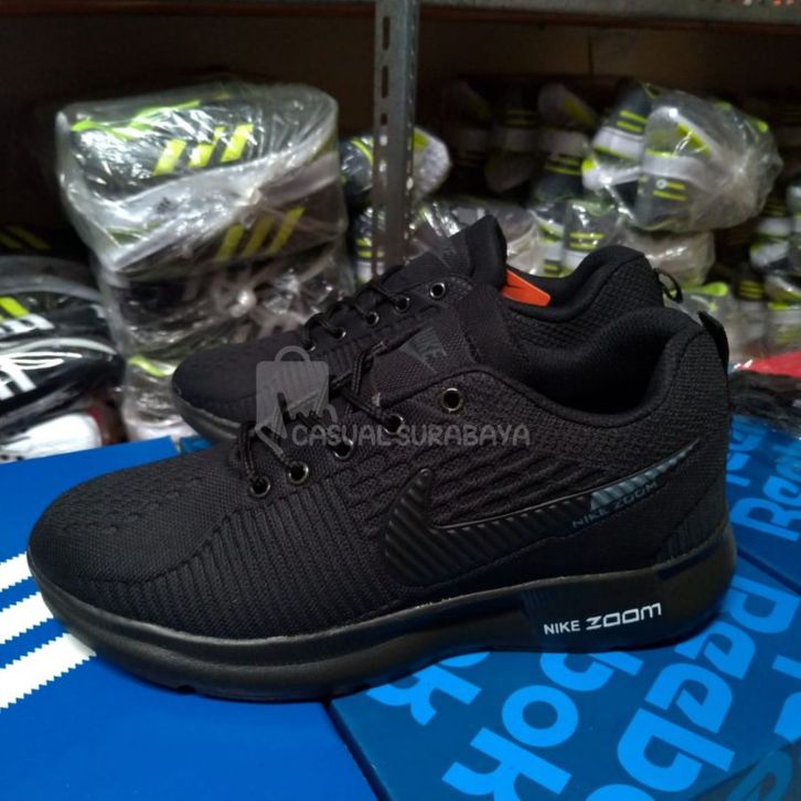 ( HARGA PROMO ) SEPATU SEKOLAH HITAM POLOS FULL BLACK NK ZOOM RUNNING
