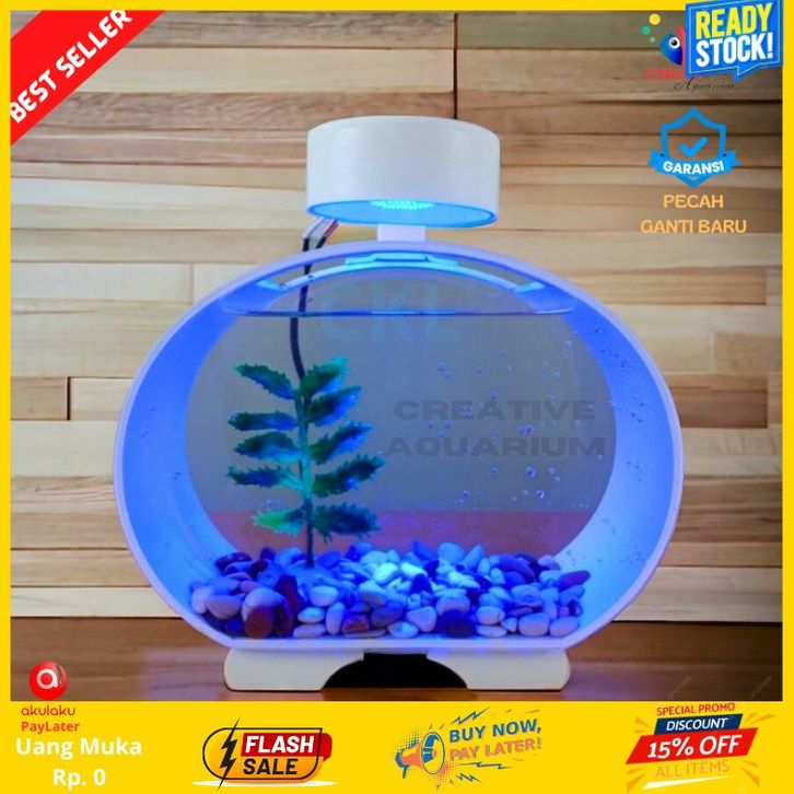 Aquarium ikan Cupang Soliter Akrilik mini lengkap dengan batu bunga hias plus lampu LED 5 WATT