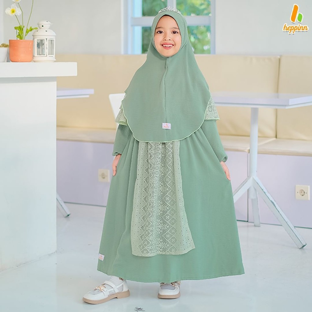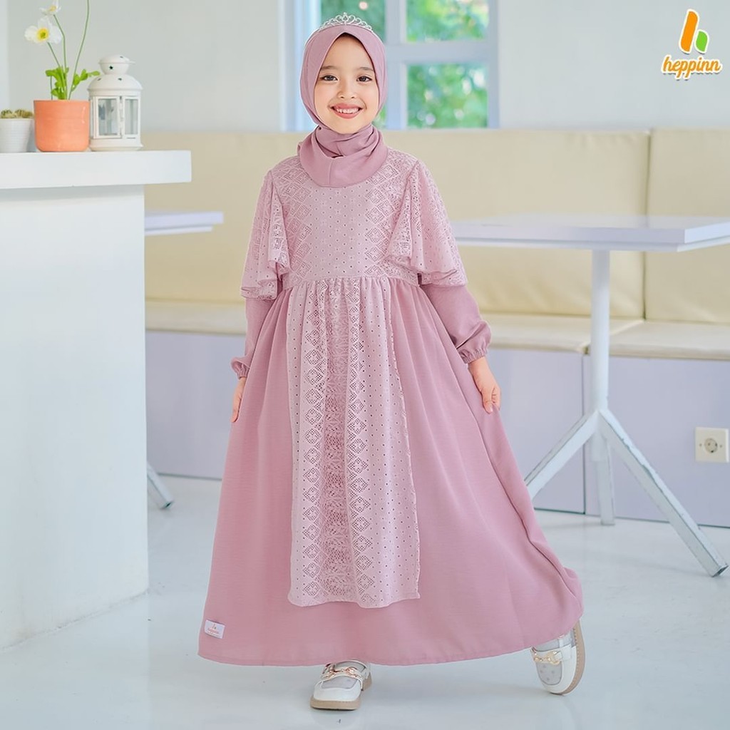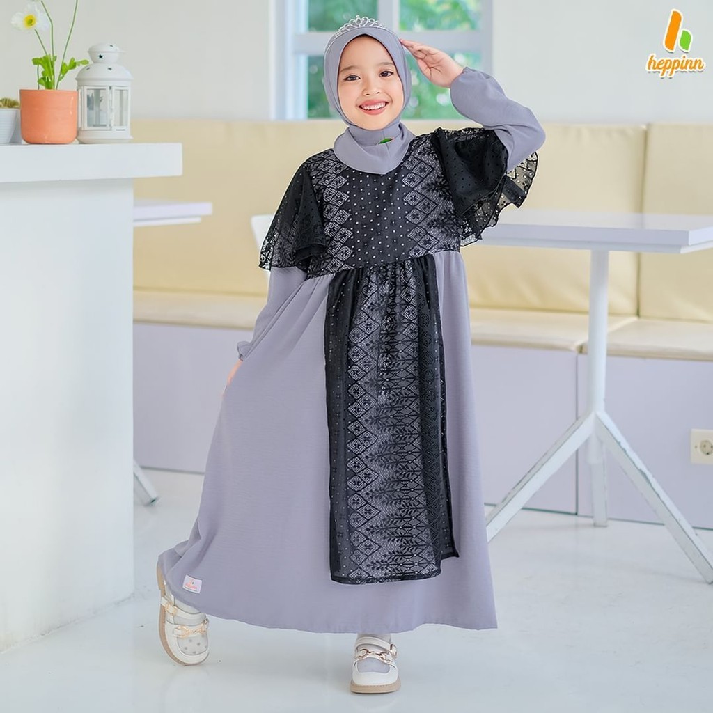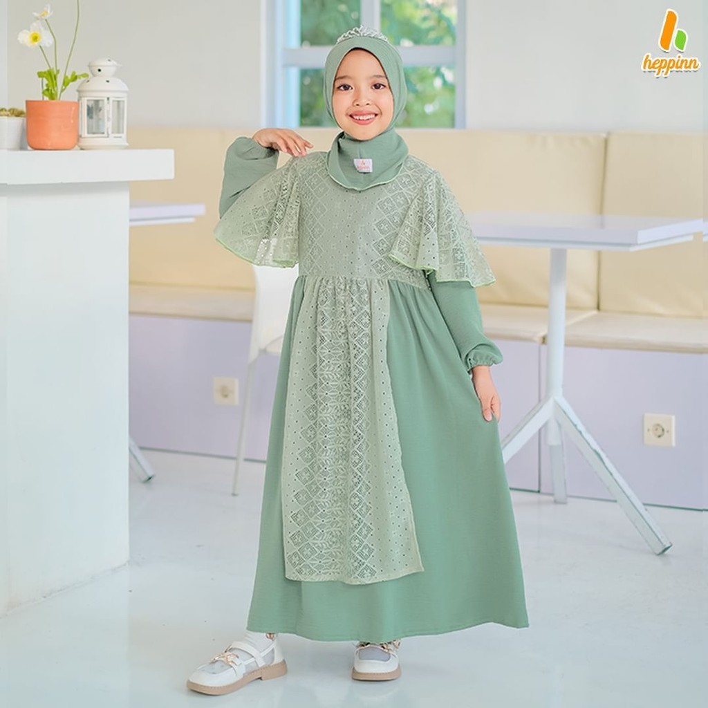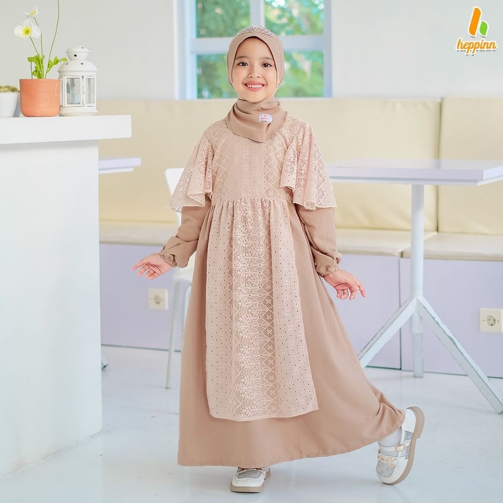 Adeeva Kids Gamis Muslim Anak Perempuan Tanggung Free Hijab Matt Cringkle Mix Brukat Premium OOTD Lebaran Casual Daily
