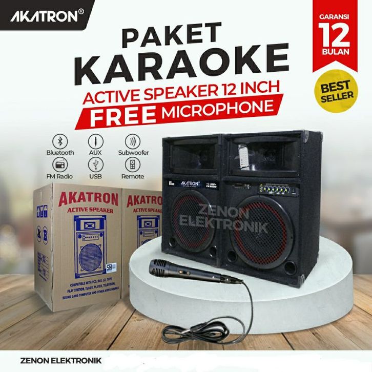 Akatron 12 Inch Super Bass - Speaker Aktif Bluetooth Karaoke Microphone Subwoofer Sound Besar Murah