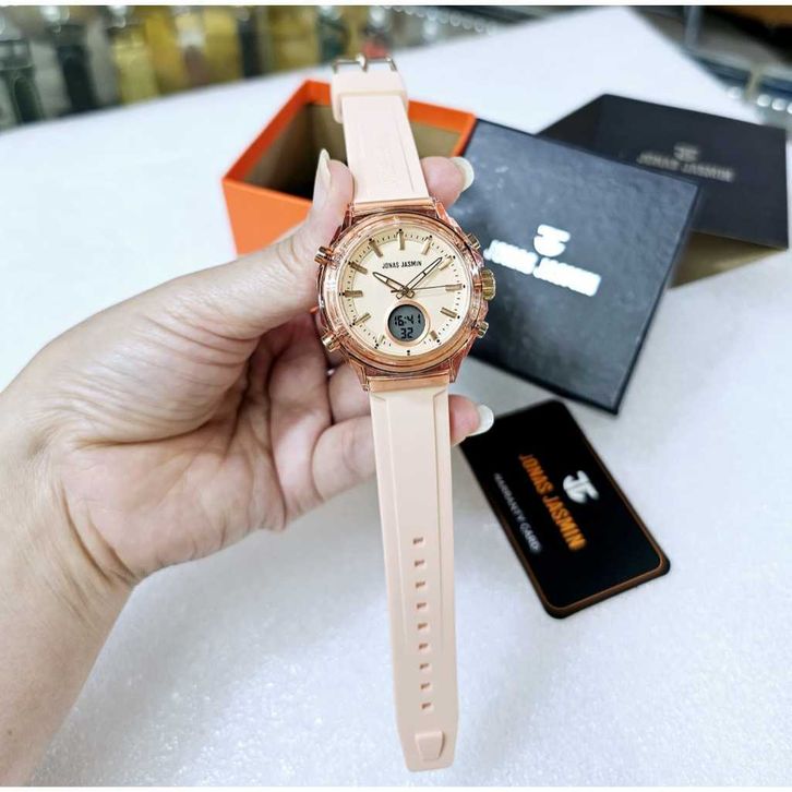 Jam Tangan Wanita Jonas Jasmin-2262 Tali Rubber Original Double Time Digital&Analog Tanggal Hari Aktif