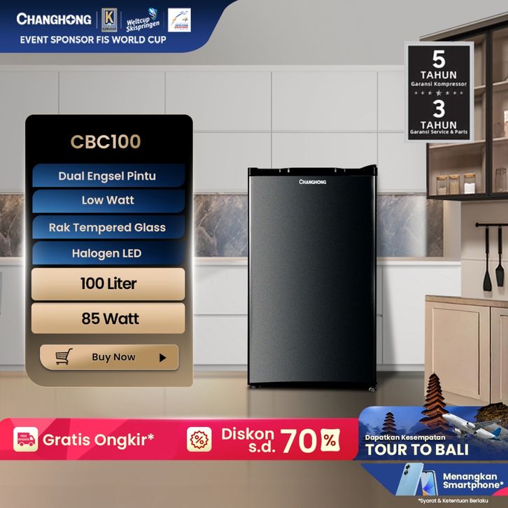 KULKAS CHANGHONG CBC 100 KULKAS MINI PORTABLE PRAKTIS 92 LITER / 90 WATT