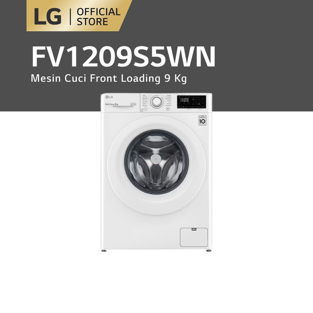 FV1209S5WN MESIN CUCI LG 9KG, FRONT LOADING AI DD™ DENGAN STEAM™, SMART DIAGNOSIS™ - PUTIH