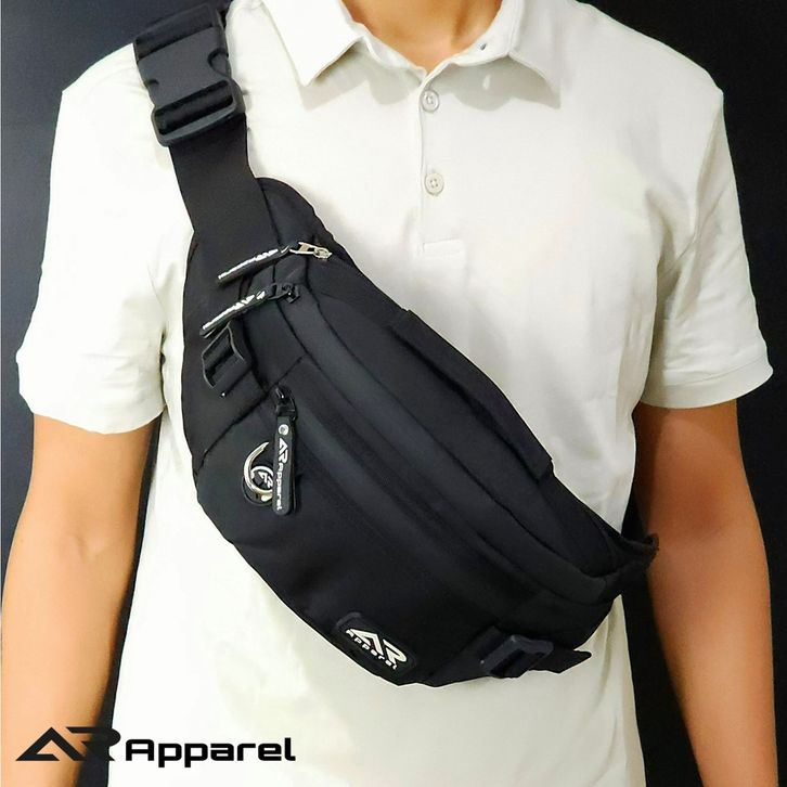 Tas Selempang Cowok Sling Bag Cowok Waistbag Sporty Black Box Outdoor Formal Kasual Bahan Nylon Polyester Muat Banyak
