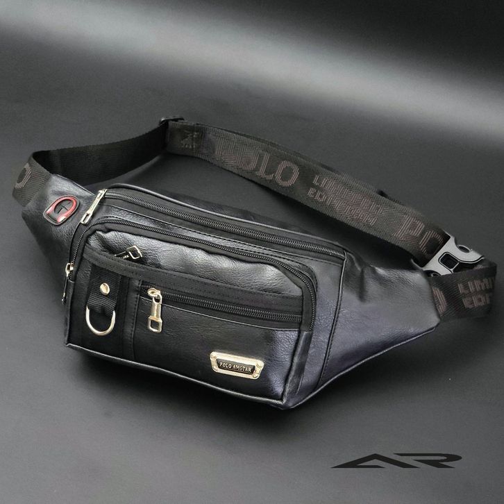 Tas Selempang Cowo Polo Amstar Waistbag PU Leather Tas Pinggang Kulit Slingbag Cowok Kerja Kasual Sporty Muat Banyak