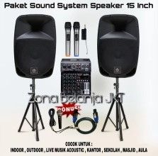 PAKET SOUND SYSTEM INDOOR OUTDOOR LIVE MUSIK KARAOKE SPEAKER ASHLEY 15 INCH AKTIF MIXER 6 CHANNEL USB BLUETOOTH MIC WIRE