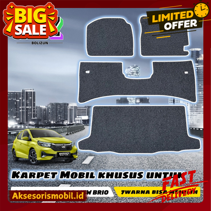 BOLIZUN Karpet Mobil Mie Bihun Custom Honda New Brio 2019-2025 (2 baris, 2baris+bagasi)