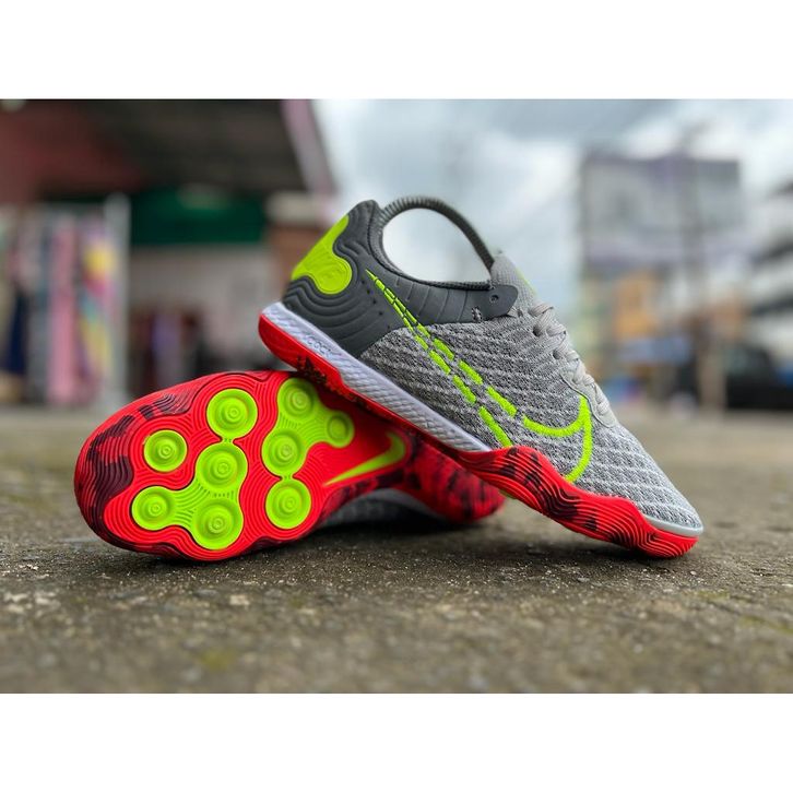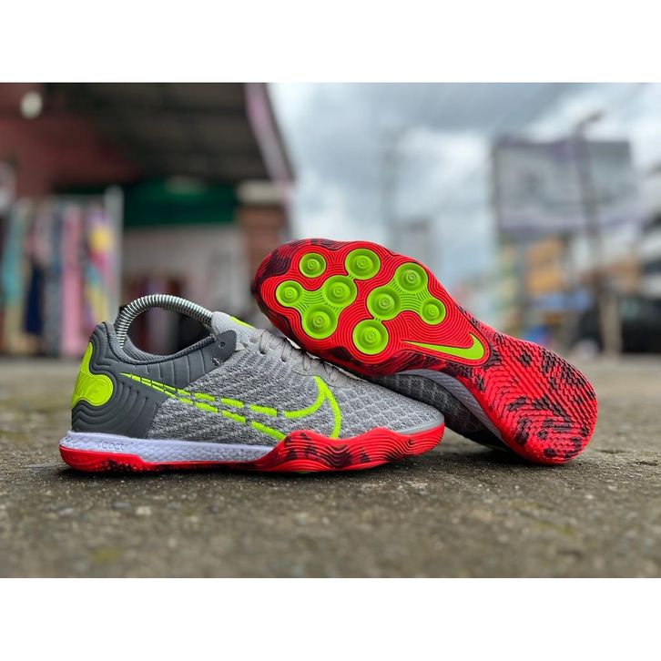 SEPATU FUTSAL - Nike ReactGato IC tapak datar Grey Bright Crimson Cool