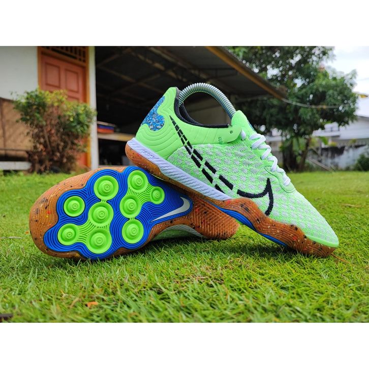 SEPATU FUTSAL - Nike ReactGato IC tapak datar Lime Glow Black White Lite Photo Blue