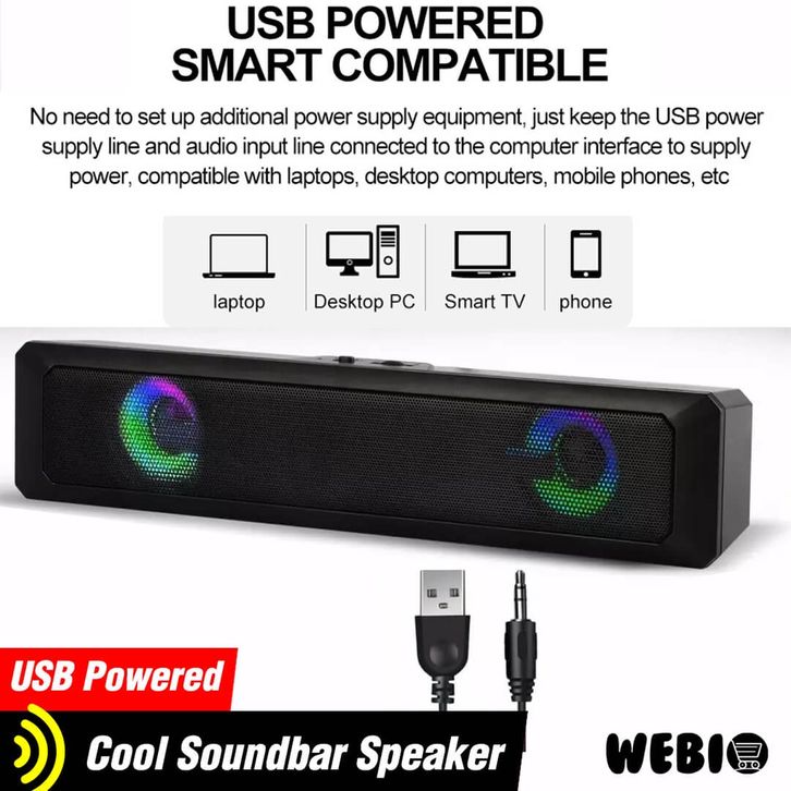 SPEAKER USB A20 SPIKER AKTIF SOUNDBAR RGB GAMING LAPTOP PC KOMPUTER TV LED FULL BASS MURAH PORTABEL