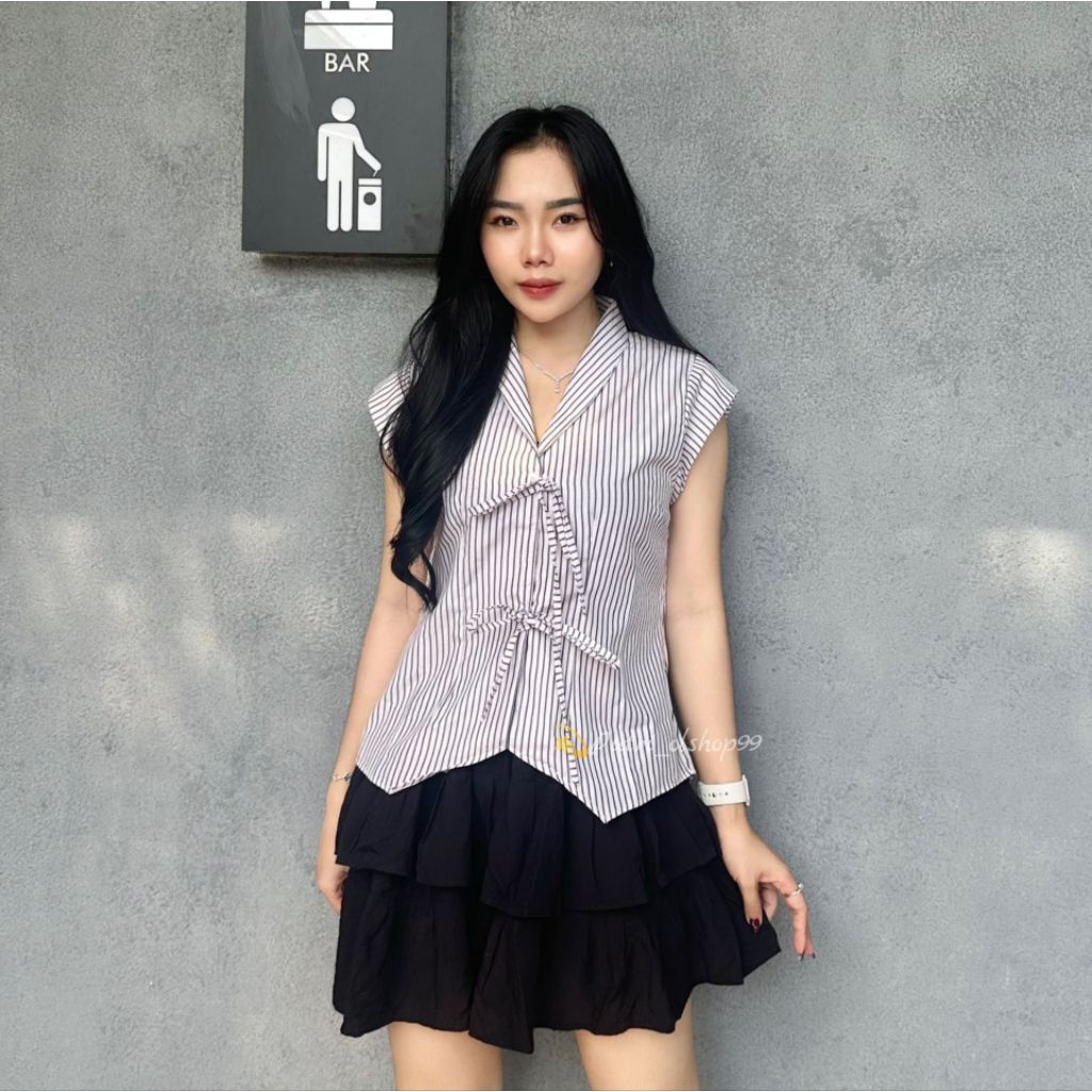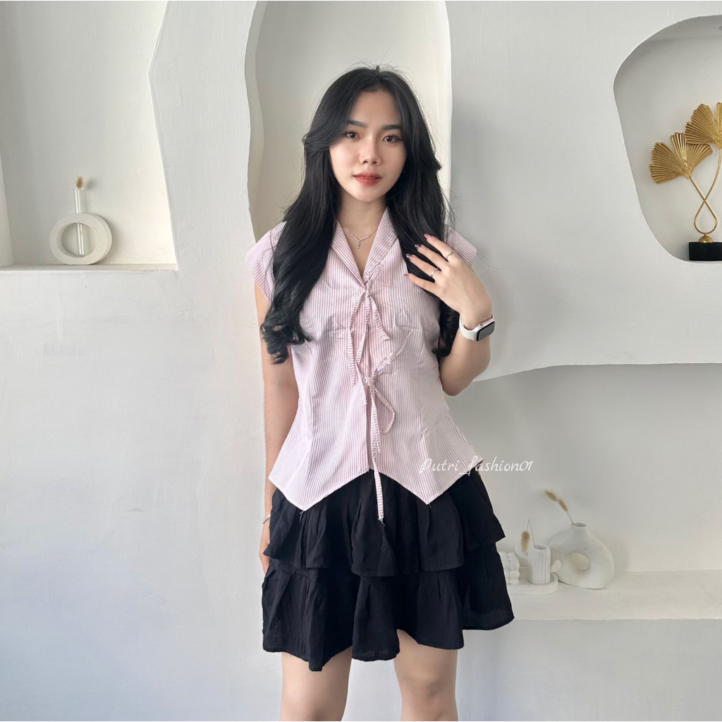 Baju Atasan Kekinian Vest Wanita Blaire Kemeja Vest | Atasan Wanita Stripe