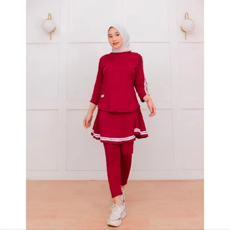 Setelan Baju Olahraga Wanita Muslim Terbaru Leging Rok Skirt Perempuan Sport Badminton Senam Lari Renang Bersepeda Zumba