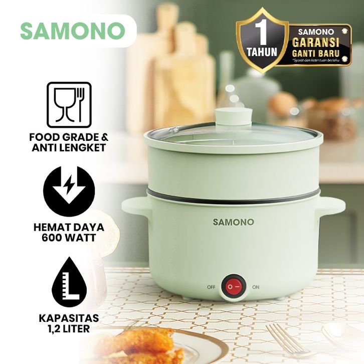 SAMONO Panci Listrik Serbaguna Fry Pan 1.2L Anti Lengket 600 Watt Material Food Grade Free Kukusan SW-DG04