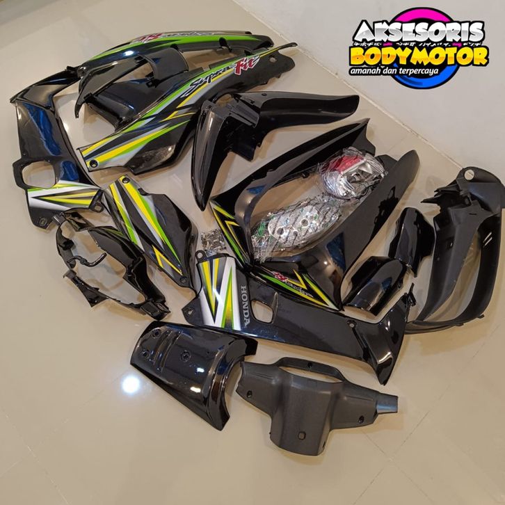FULL BODY HALUS DAN KASAR HONDA SUPRA FIT LAMA / SUPRA X LAMA HITAM (REM DEPAN CAKRAM/TROMOL) + STIRIPING, BAUT, REFLEKT