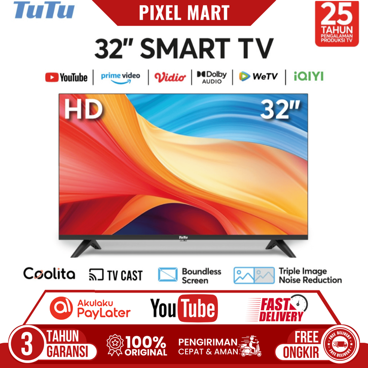 TUTU SMART TV 32 INCH COOLITA 3.0 HD DOLBY AUDIO DIGITAL TELEVISI WIFI HDMI YOUTUBE NETFLIX GARANSI 3 TAHUN 43 INCI NEW