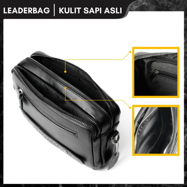 Tas Selempang Pria Kulit Sapi Asli Hitam Waterproof Handbag Premium Branded Multifungsi Leaderbag Tas Kulit Tas Pria