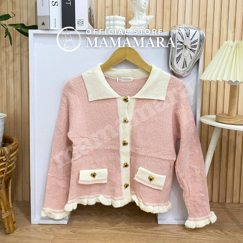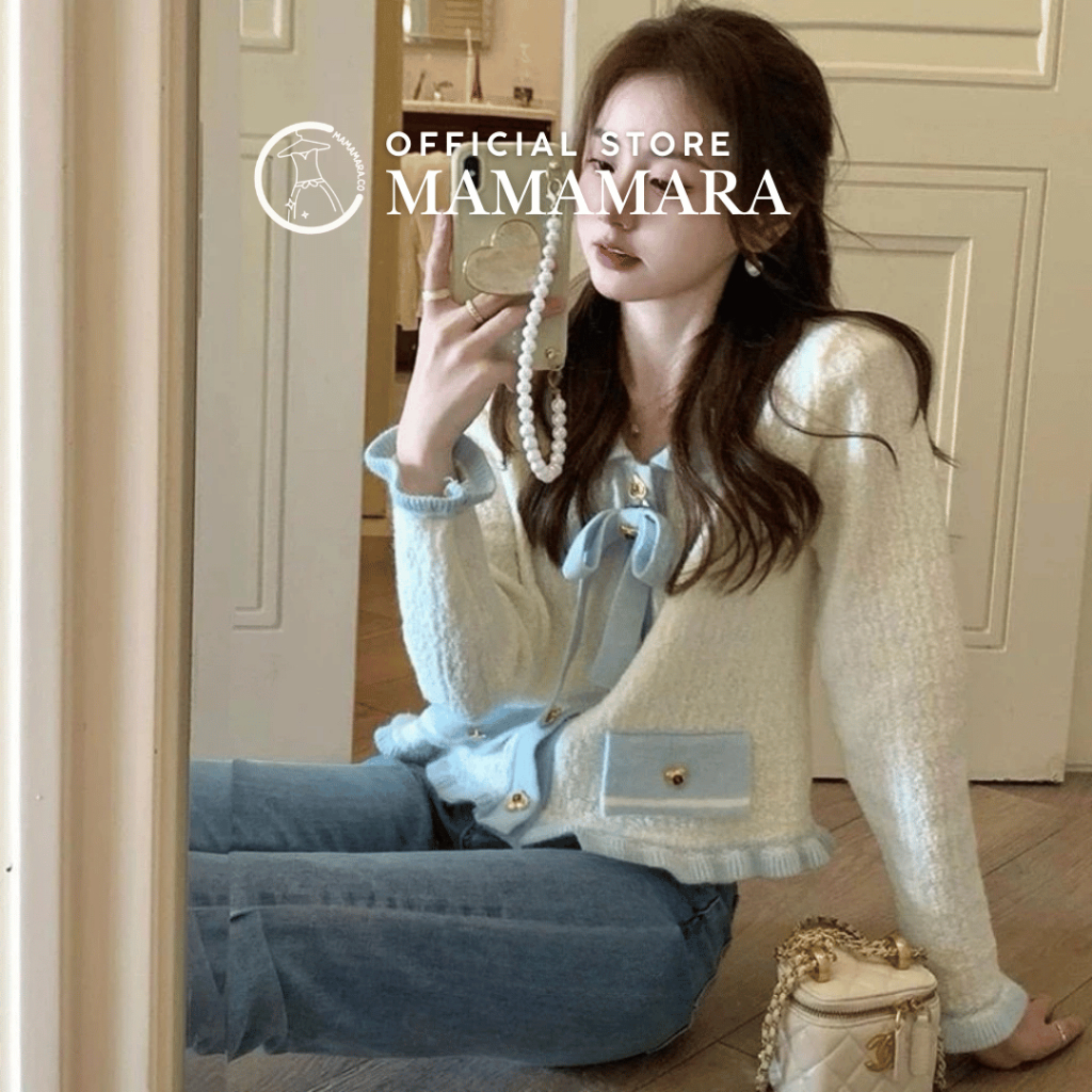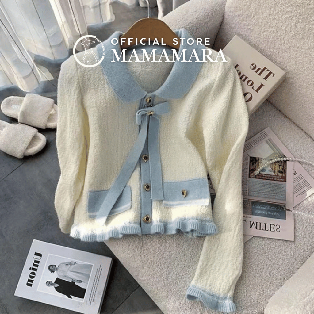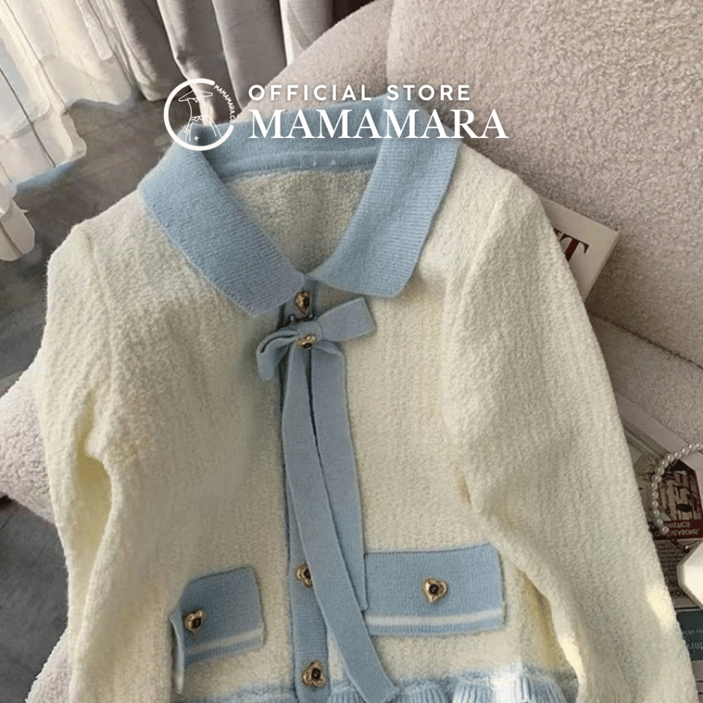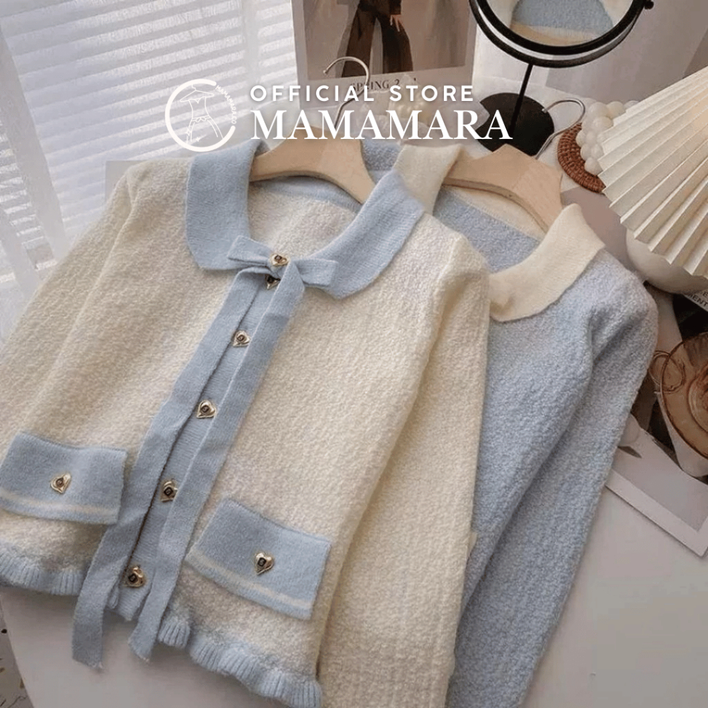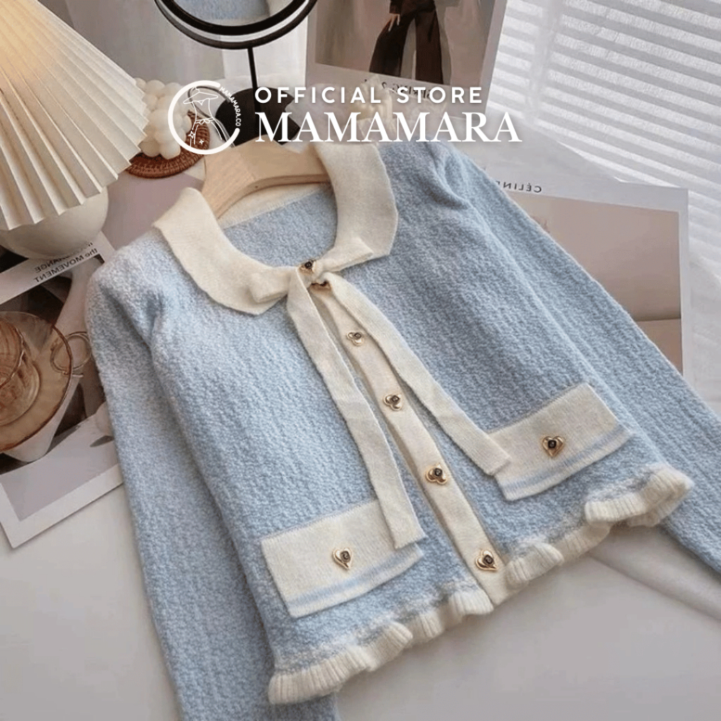 PROMO CARDIGAN LOVE GOLD BUTTON CARDI SWEATER ATASAN RAJUT WANITA COLLAR RIBBON LONG SLEEVE TEXTURE TERLARIS