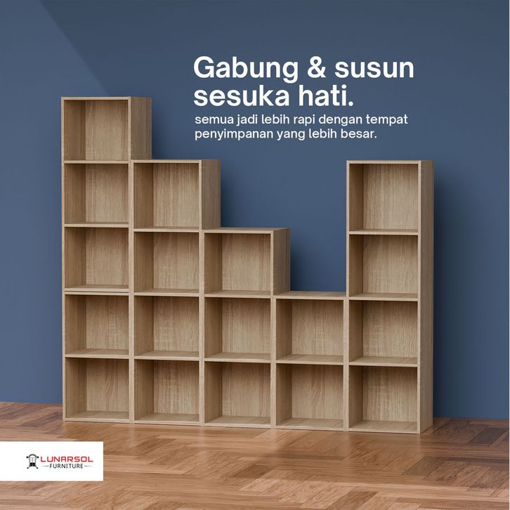 RAK SUSUN LUNARSOL RSG SERIES MODULAR DAN MULTIFUNGSI RAK SUSUN SERBAGUNA RAK SUDUT RUANG TAMU ESTETIK RAK SUDUT KAYU