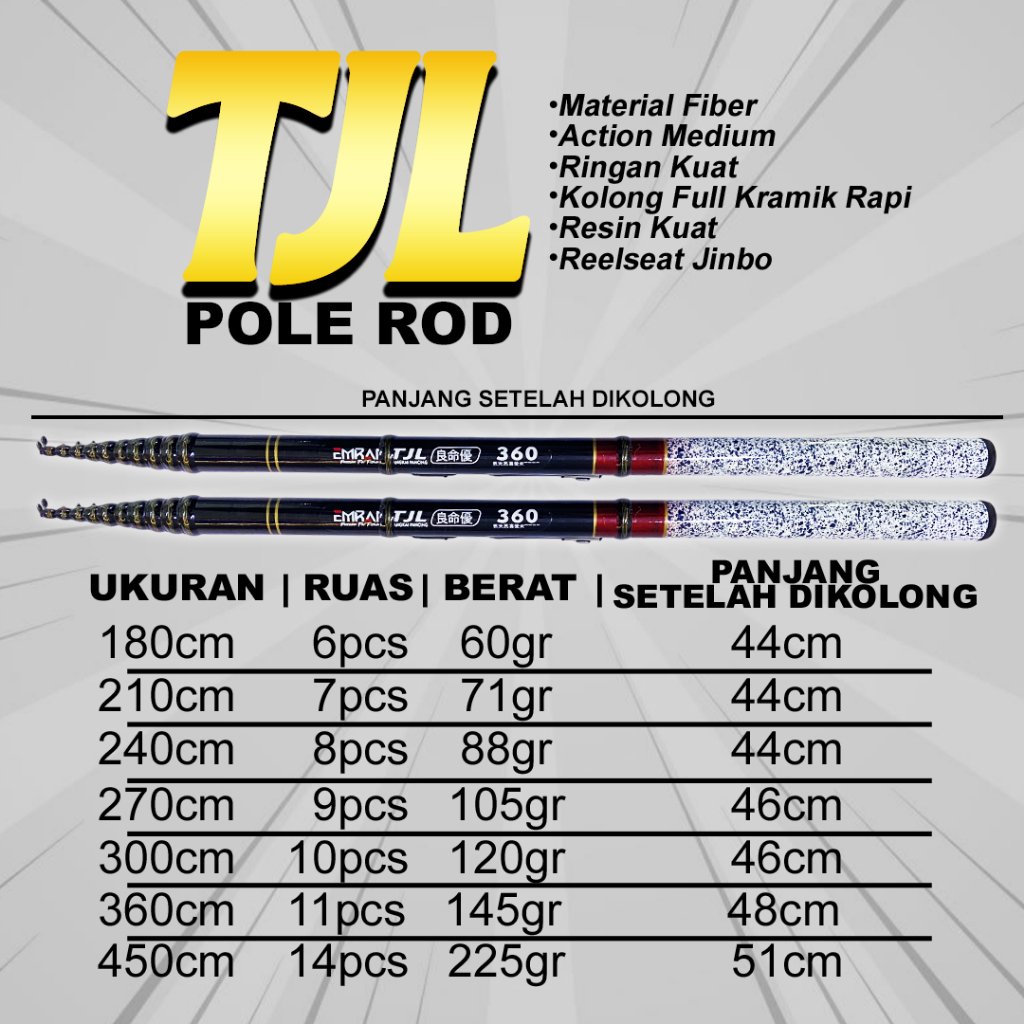 Set Lengkap Joran Tegek Kolong Murah Emran TJL Ruas Pendek Fiber