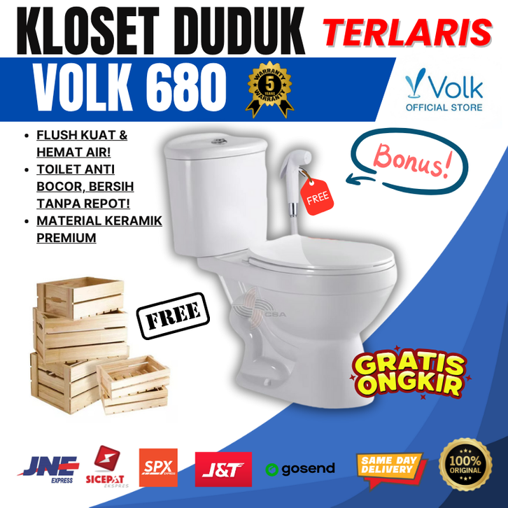 KLOSET DUDUK 1 SET / KLOSET DUDUK / KLOSET DUDUK OTOMATIS / KLOSET DUDU MURAH / TOILET/KLOSET DUDUK Volk Scilla 680