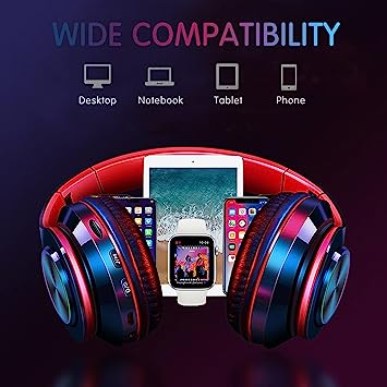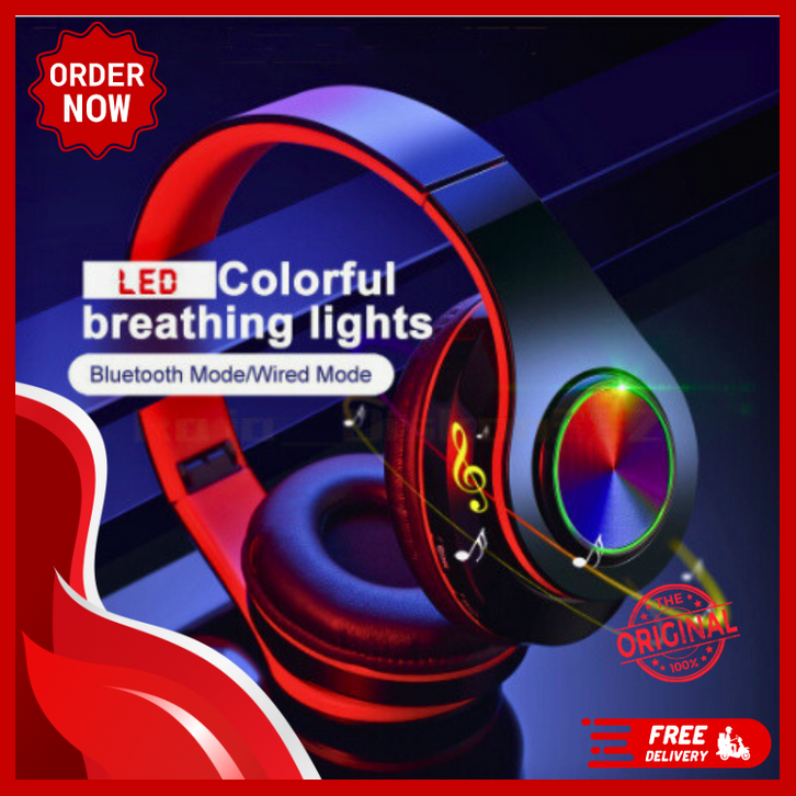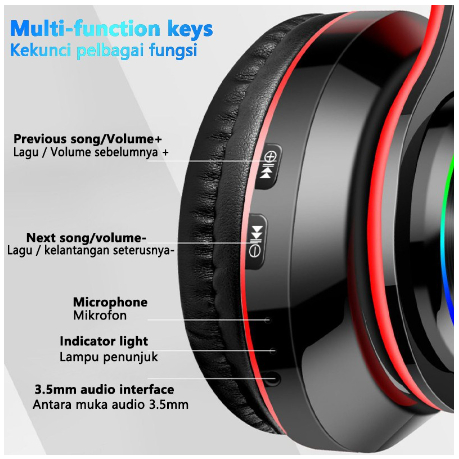 HEADPHONE HEADSET BLUETOOTH BASS 5.0 RGB LED HIFI STEREO DENGAN MIKROFON