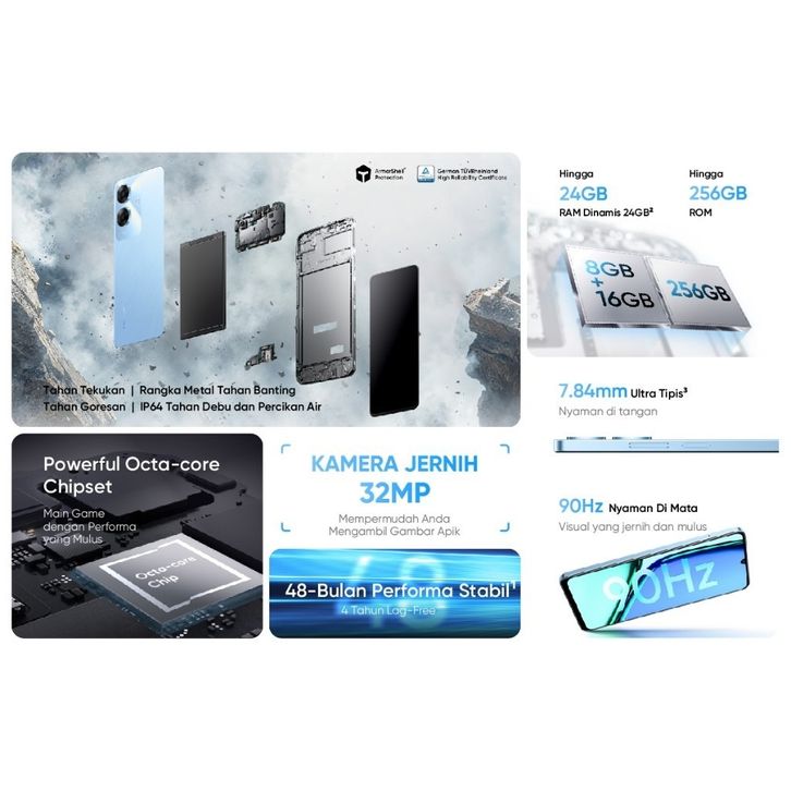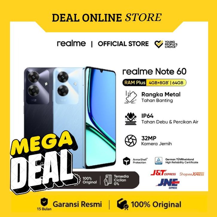 [Star] Realme Note 60 4GB+8GB*|64GB (ArmorShell™ Protection | TÜV Rheinland | 32MP Camera| 48-month Fluency | IP64 Dus