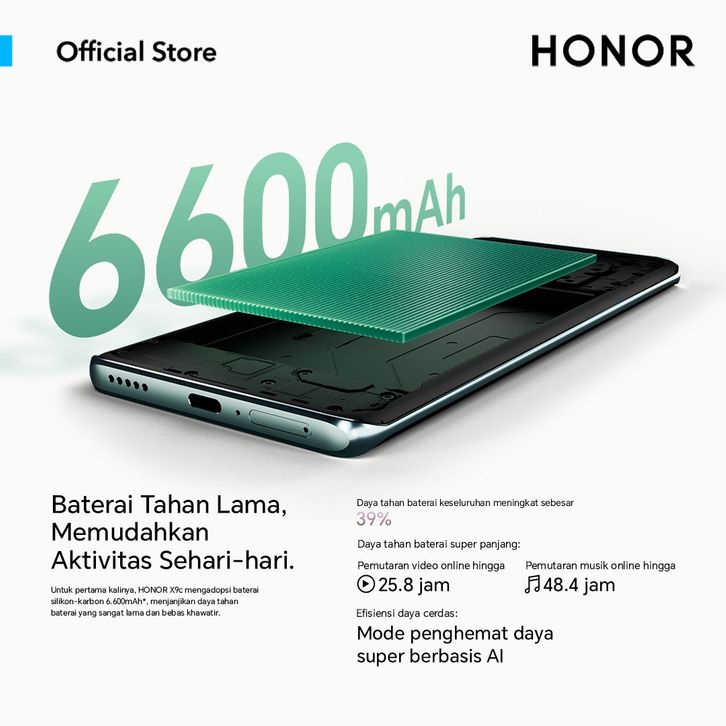 [HP Mall] HONOR X9C (12/256GB) 108 MP (Kamera Utama) 18MP (Kamera Selfie) | AMOLED 120Hz | 6600 mAh 66W Wired