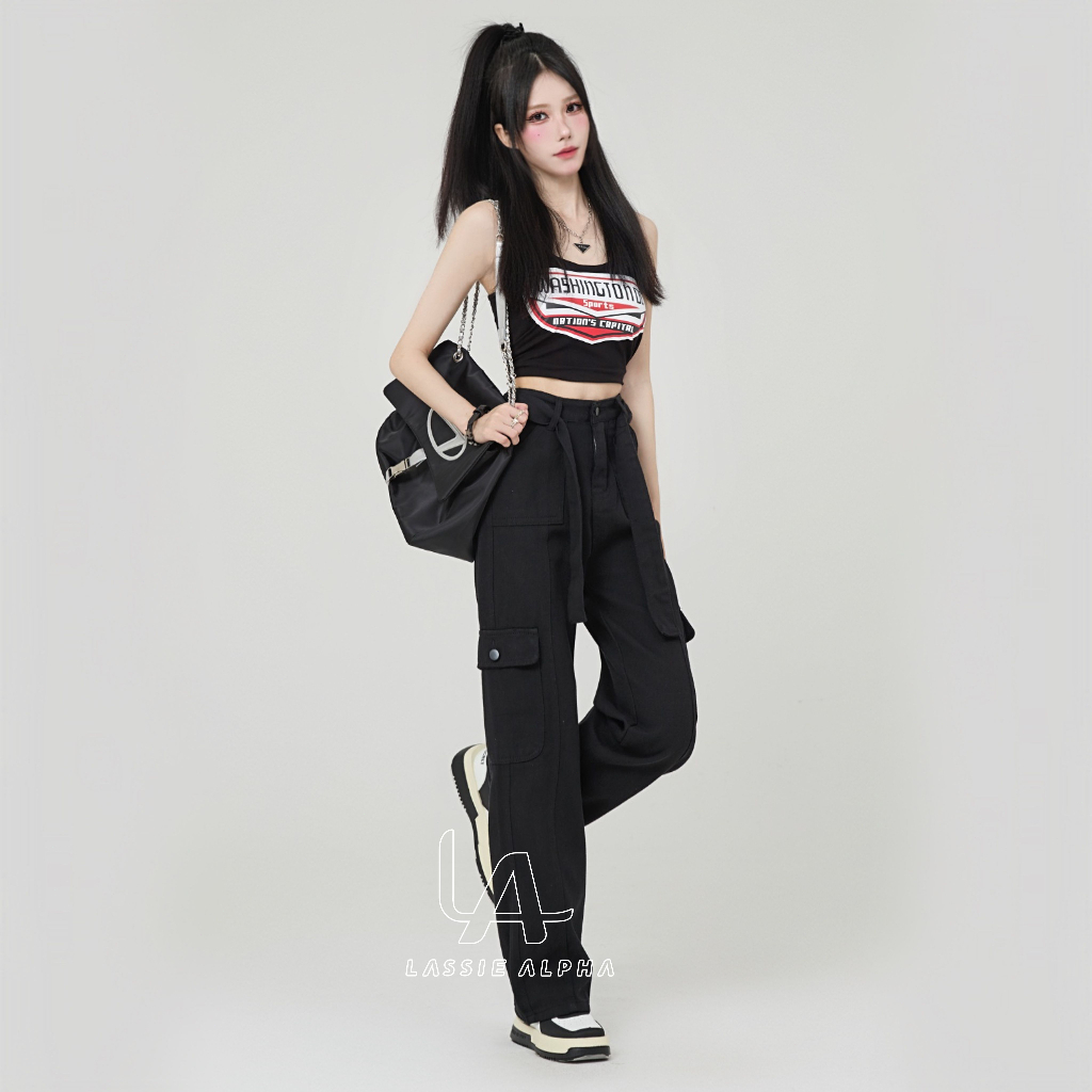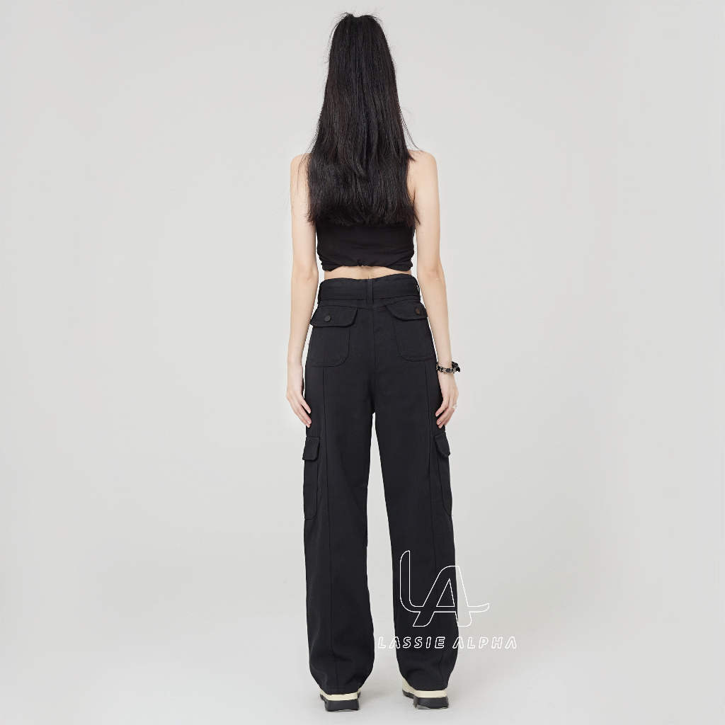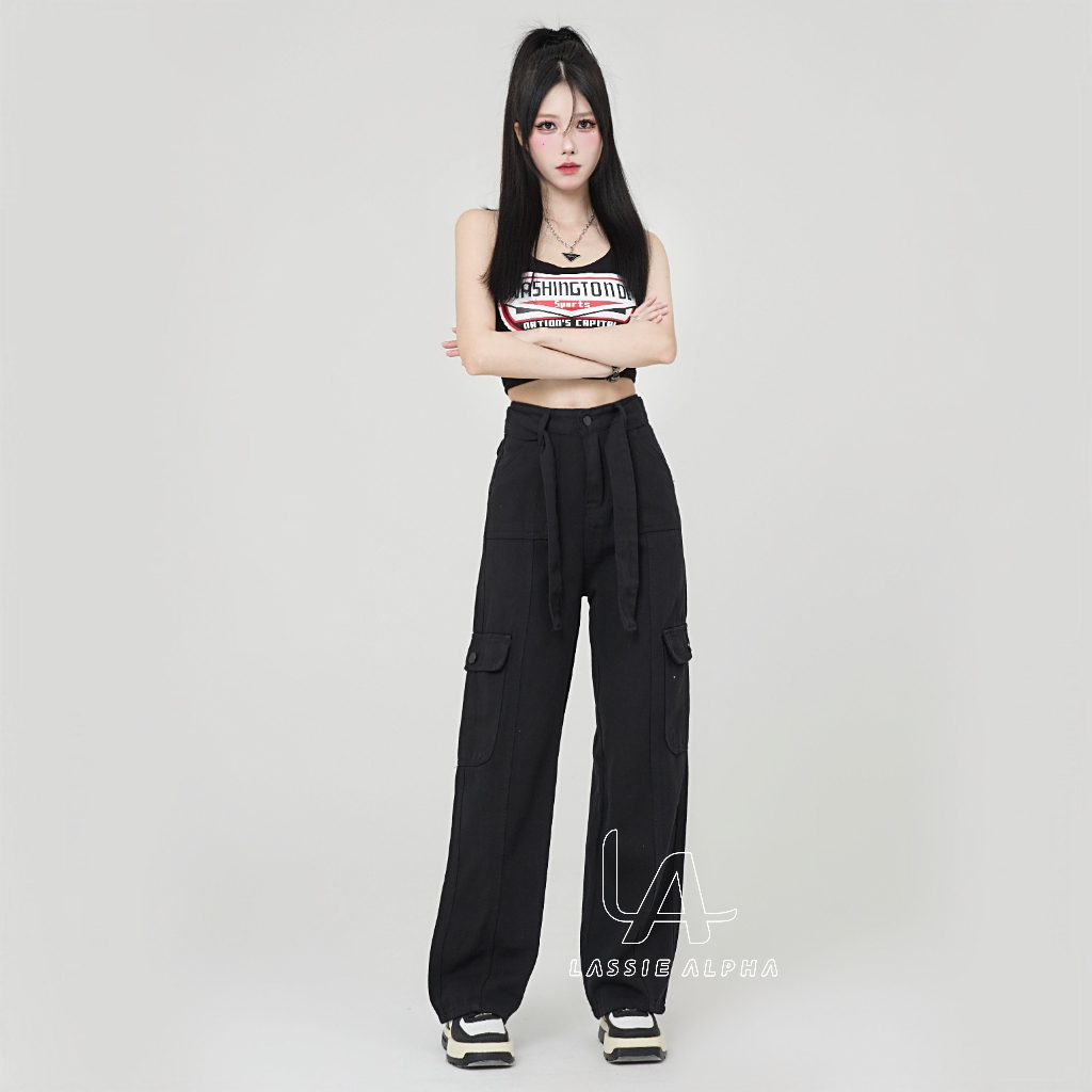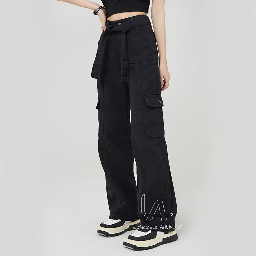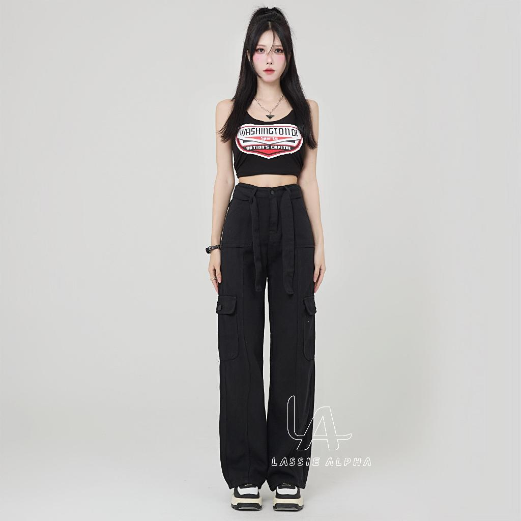 Celana Cargo Panjang Wanita - Lassie Alpha J42 celana cargo jeans wanita celana highwaist kargo pants jeans black HW