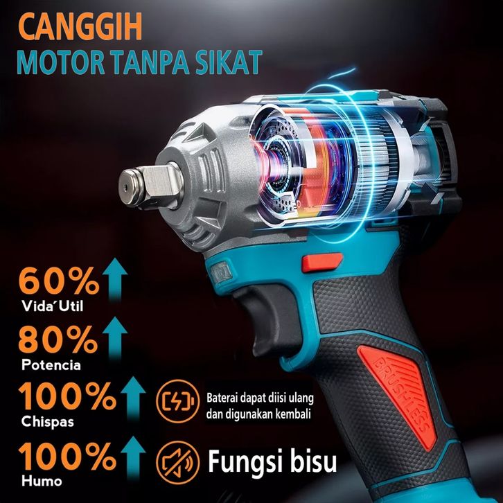 21MM CORDLESS IMPACT WRENCH BRUSHLESS 1600N.M impact baterai 1090VF MESIN BOR JV88 UNTUK BAUT MOBIL impact jld 1090V ori
