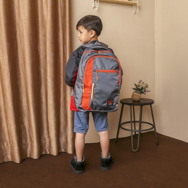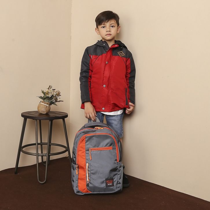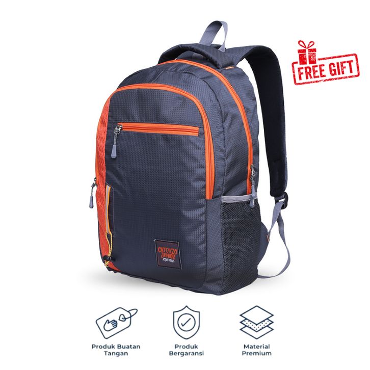 Catenzo - CST 281 Junior Tas Sekolah Anak Laki-Laki Extra Rain Cover Ransel Original Abu Kombinasi FREE ONGKIR